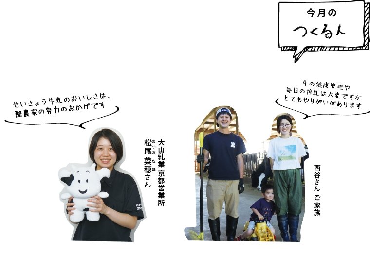 1970年、京都生協の産直商品第1号として誕生したせいきょう牛乳は、3世代にわたって愛飲する家庭もあるほど、京都生協の食卓に定着しています。いつも飲んでいる方も、まだ飲んだことがない方も、ぜひ1杯いかがですか?