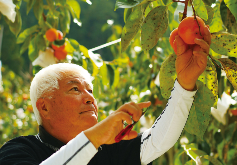 富有柿。収穫直前まで、大地の恵みをたっぷりと果実に蓄えます