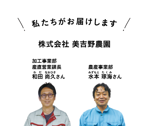 「京都生協は“つくり手の想いを組合員さんにいかに届けるか”ということを、ずっと一緒に考えてくれています。すごく産地想いなんですよ」と笑顔を見せる、和田さん。その言葉通り、美吉野農園では京都生協職員が産地や商品について学び、生産者との交流を通して信頼関係を築いていく「産直交流」を大切にしてきました。「産地について知った上で食べてもらう。これって、消費者が生産に参加することにつながると思うんです」と、和田さん。京都生協での供給を通して、幅広い組合員が生産に参加する“援農”の輪が広がることで、これからの農業に大きな可能性を感じられています。