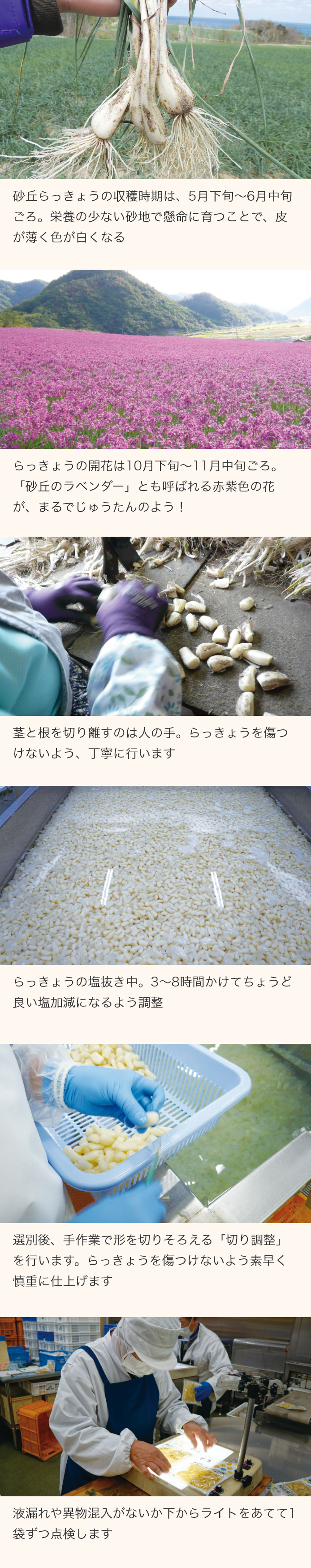 「異常気象や生産コストの上昇が辛いなか、らっきょうづくりを続けてくれる農家さんには頭が上がりません」と岡垣さん。妥協のない商品づくりが農家への恩返しです。幾重もの苦難を乗り越えて届けられる「