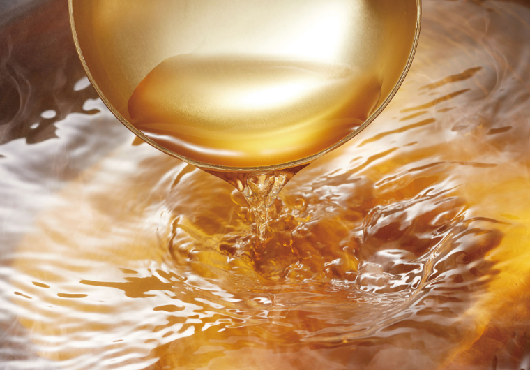 澄んだ輝きの中にうまみがぎゅっと凝縮された、まさに「黄金のだし」