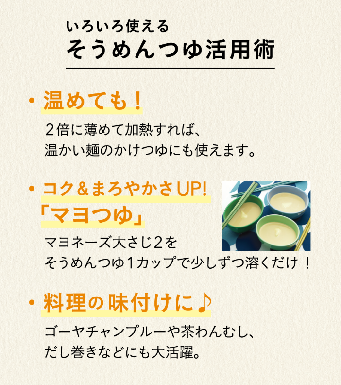 暑さが増すにつれ、恋しくなるそうめんに欠かせない相棒・そうめんつゆ。希釈せずにそのまま使える「