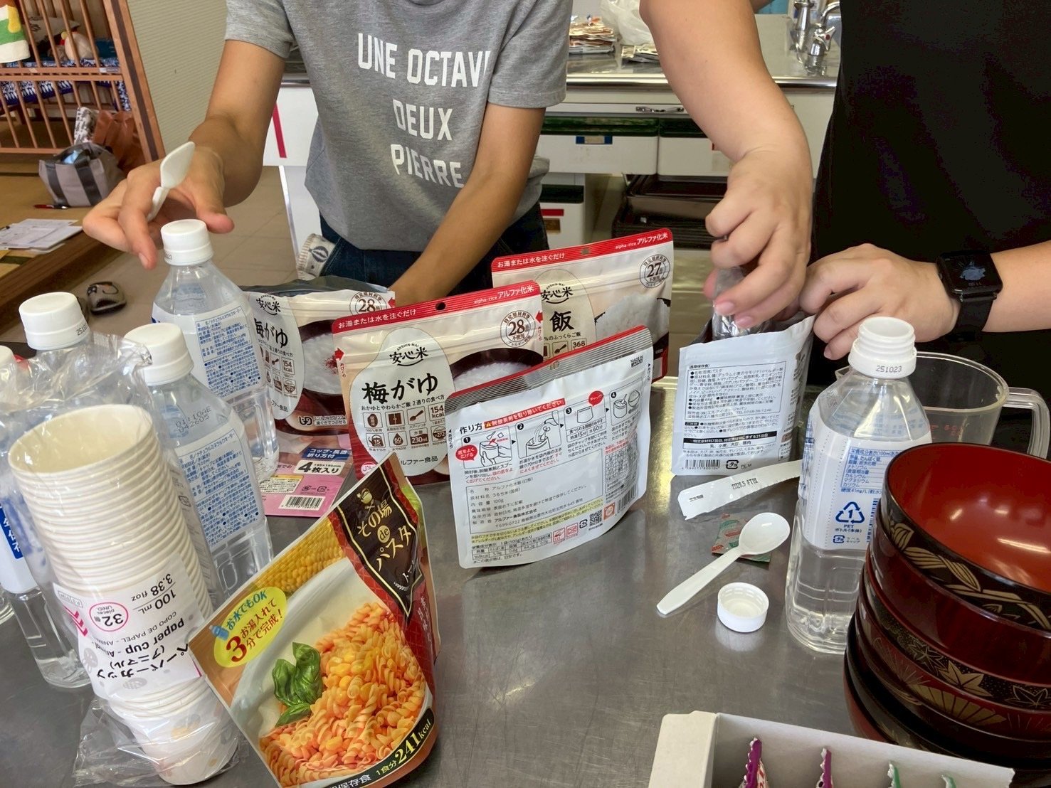 ・今回の試食や企画までの話し合いを通じて、自分が準備していたものを見直し買い足すきっかけになりました。水でもどせるアルファ化米やパスタを、初めて食べました。実際に家で作ってみて,子どもも水で作れることがわかってよかったです。