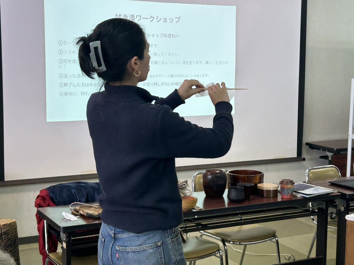 実際にやってみることで身近に感じられた漆。皮膚につくとかぶれてしまうため、気をつけることはありますが、参加者からは拭き漆なら子どもと一緒にやってみたいな、などの声がありました。