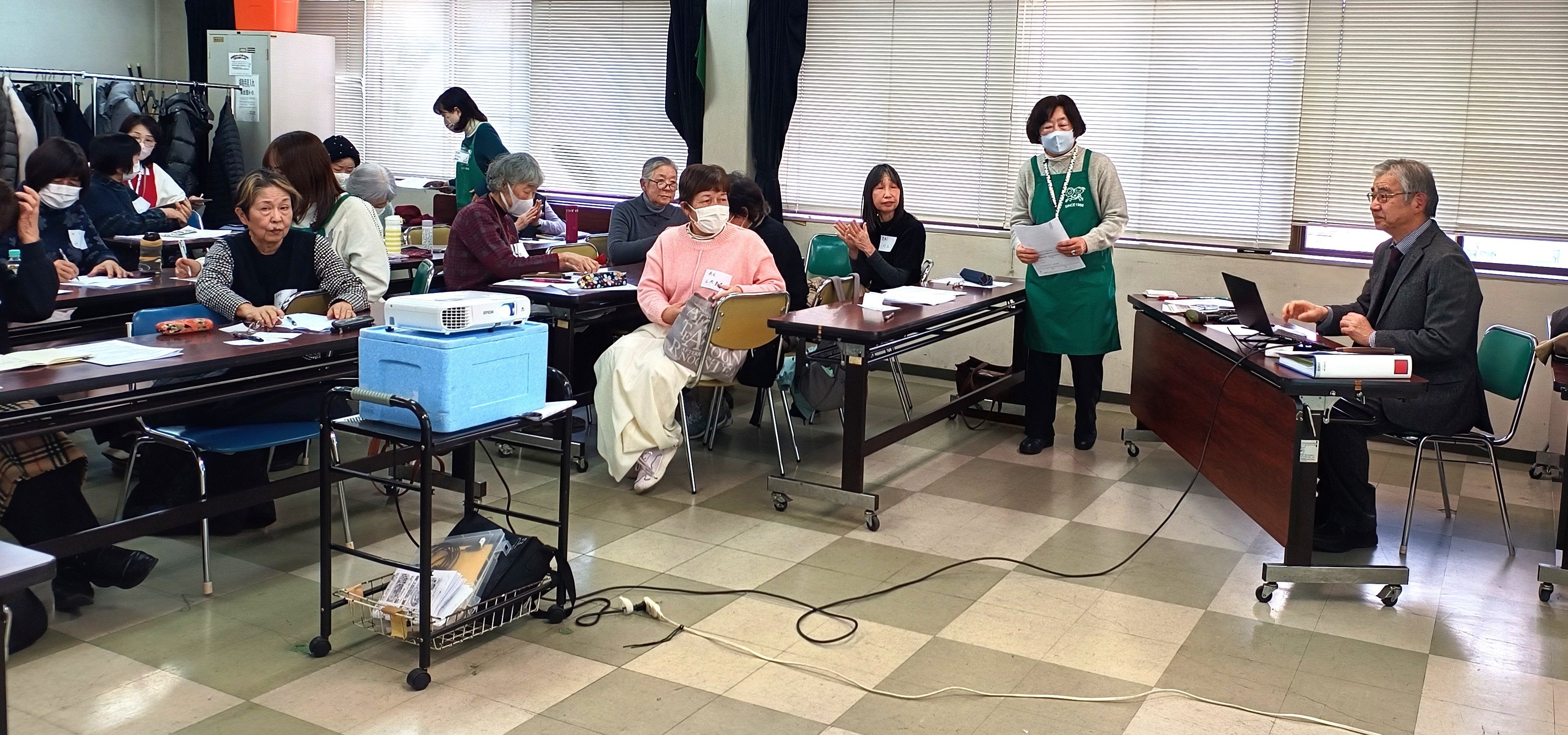 後半は大谷大学の平尾良治先生による「京都生協くらしの助け合いの活動再構築に向けて」のお話として、昨年10月に地域コーディネーターにご協力いただいたアンケートの結果報告の後、5人ずつのグループに分かれて分散会を実施しました。