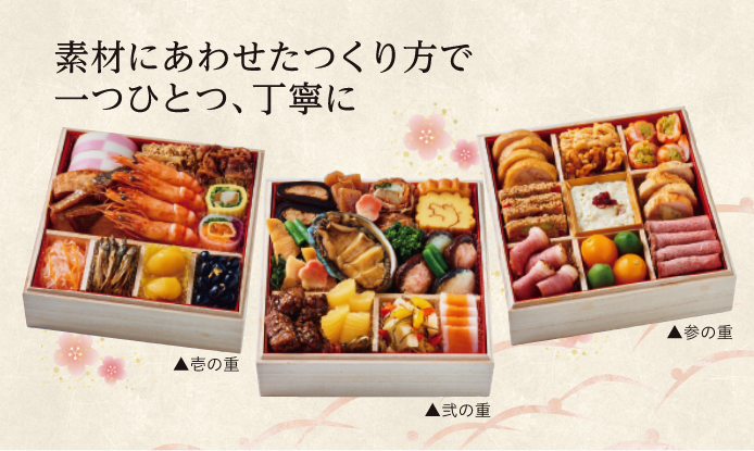 そして、おせちにおいて最も重要なのがバランス。「おせちは壱から参の重、全体で一つの料理。昔ながらの安心感と新しいおいしさの両方を味わえる、そして“目で味わう楽しさ、美しさ”を感じていただけるよう、考え抜きました」と、小池さん。