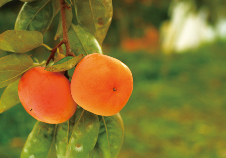 富有柿。収穫直前まで、大地の恵みをたっぷりと果実に蓄えます