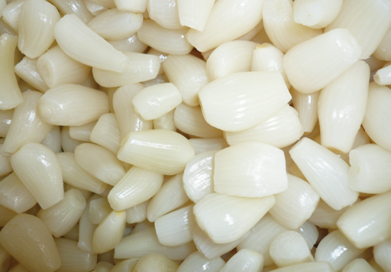 選別後のらっきょう。つやつやと輝く姿は真珠のよう