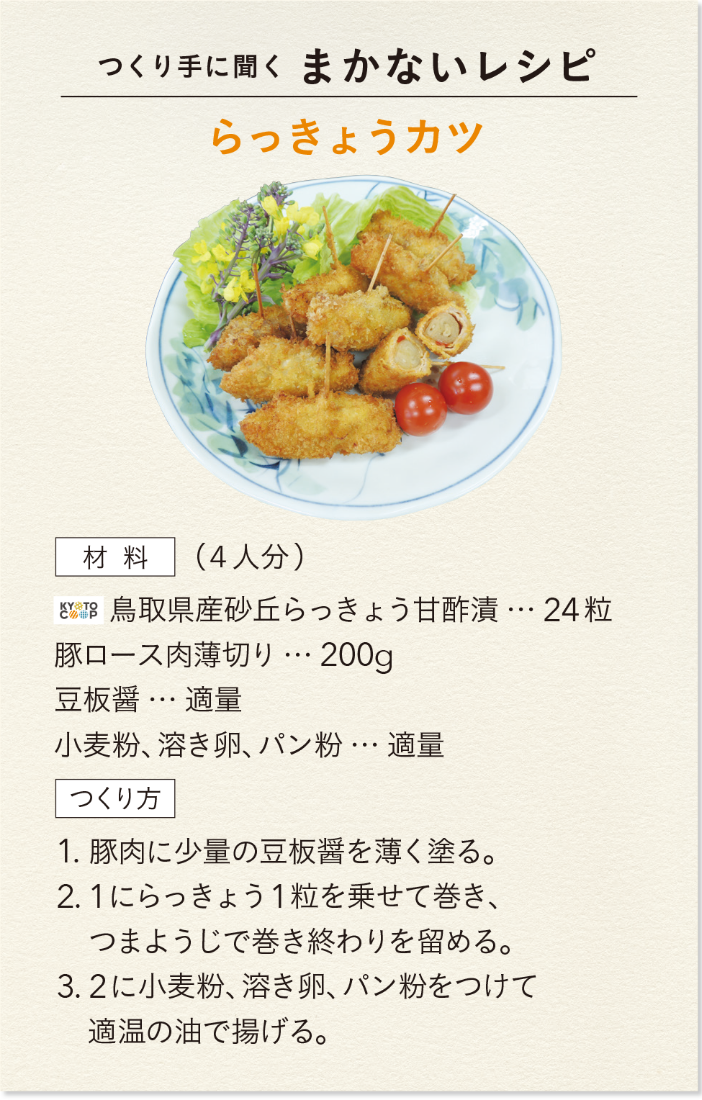 鳥取県産砂丘らっきょう甘酢漬」。生産者に思いを馳せながら、一粒一粒を噛み締めてみませんか。