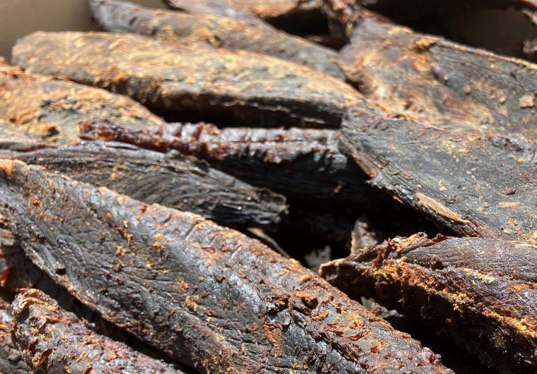 だしの原料のひとつ、「かつお荒節」。かつお節で一般的にイメージされる、茶色く固い木のようなものは「枯節」というまったく別のものだそう
