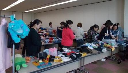 南エリア会では、子育て中のお母さん同士が交流できる場を作ることを目的に、今年も恒例の「おしゃべり交流&不用品交換会」を行いました。子どもの成長と共に、いらなくなった育児用品を持ち寄って交換し、おしゃべりをして楽しいひと時を過ごしました。