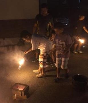 ピザなどの昼食の後、夕方に流しそうめんをし、BBQ、花火を夜まで満喫しました。