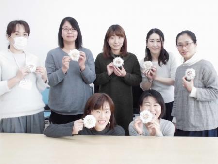 講師にメンバーのママ友でもある栗田さんをお迎えして、自分のためにコサージュを作りました。