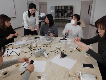 ・初めてグルーガンを使ったが思っていたより難しかった。でも、エリア会のみんなとお揃いのコサージュが出来て良い思い出になりました!!