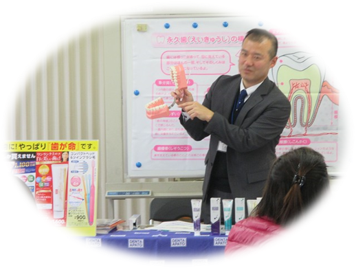 乙訓Bエリア会では、歯の健康はとても大事という事で、株式会社サンギの森盛治さんにお越しいただき、「オーラルケア」学習会を開催しました。