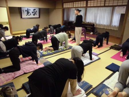 約1時間半のヨガを、サーラヨガ講師の寺西しのぶ先生にして頂きました。