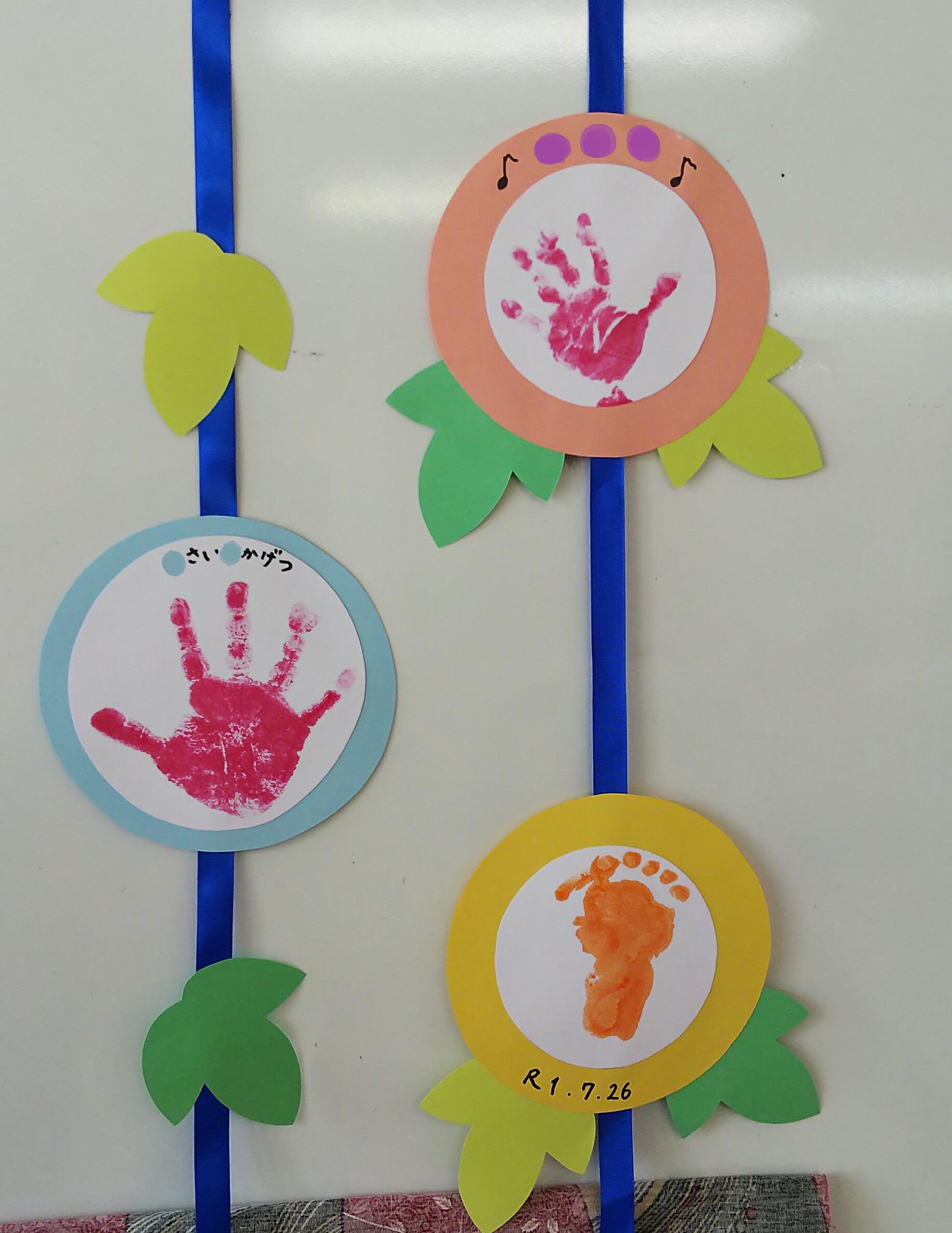 かわいく切り抜いた朝顔にはりつけて飾りにします♪