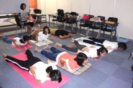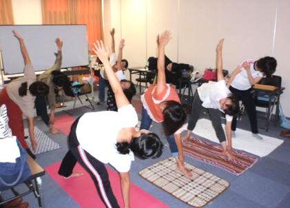 マッサージの待ち時間ではメンバーが準備してくれたDVDを見ながらみんなで「ヨガ」を体験しました!