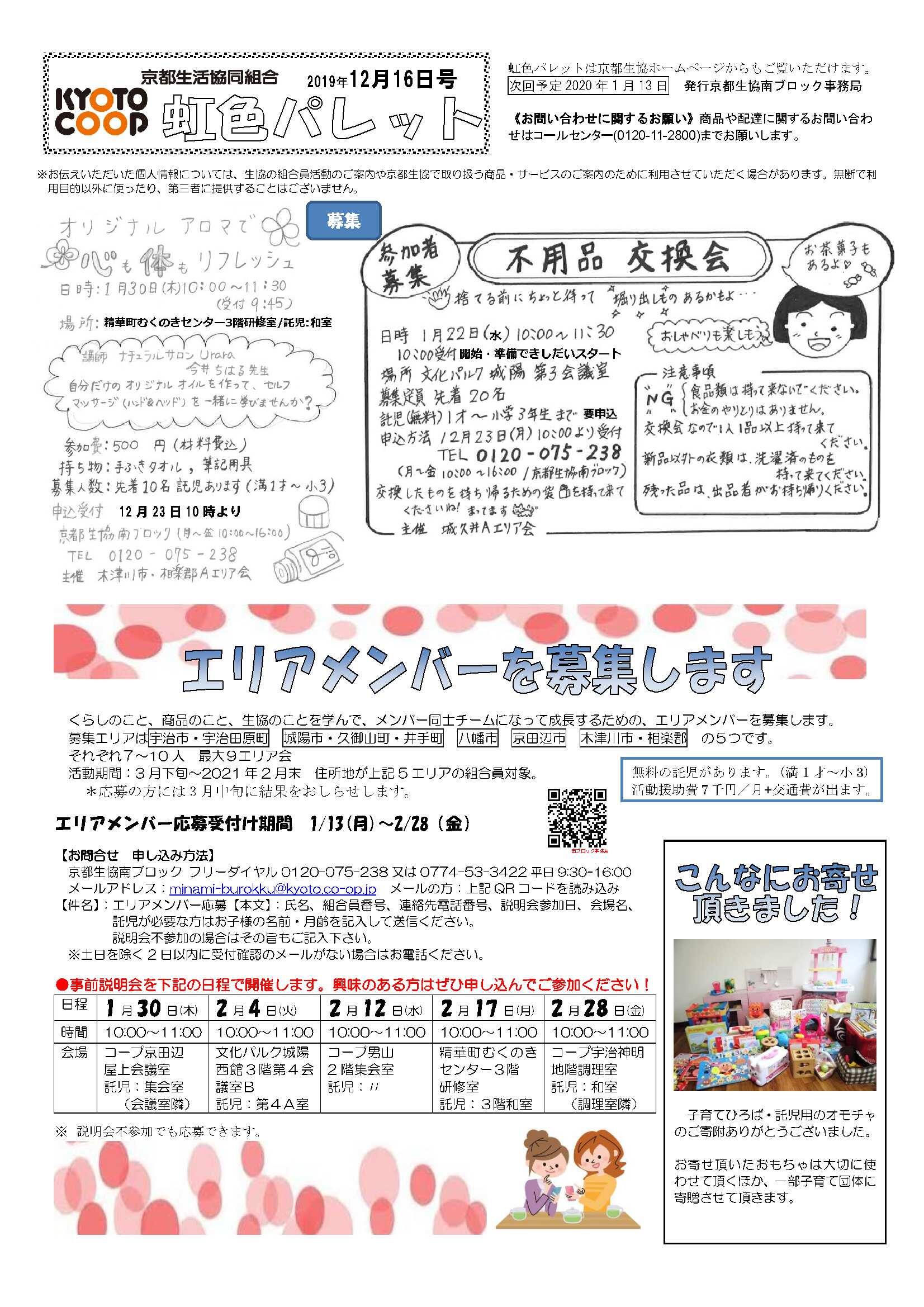 次回発行は1月13日の予定です。 虹色パレットに掲載されています、募集記事は南ブロックエリアにお住まいの方が対象です。