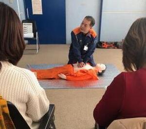 心肺蘇生とAEDの使用手順、誤飲した時の対処法を子ども・大人のそれぞれについて教わりました。