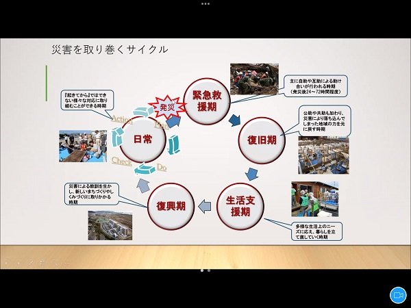 能登半島地震の様子なども実際の写真を交えて説明していただき、災害が身近に感じた講座となりました。