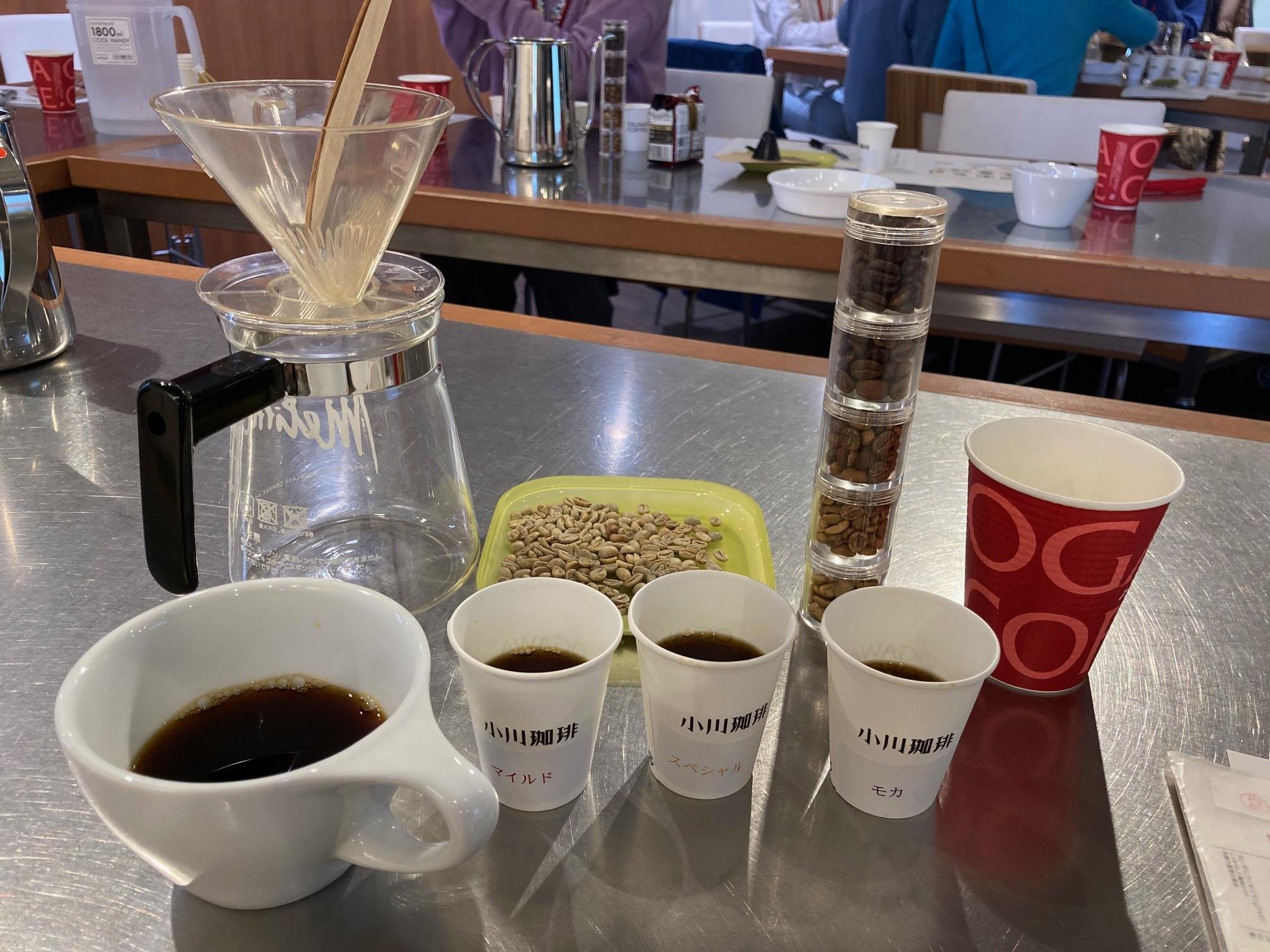 コーヒーができるまでの小川珈琲こだわりのお話を聞き、美味しいコーヒーの淹れ方を学びました。