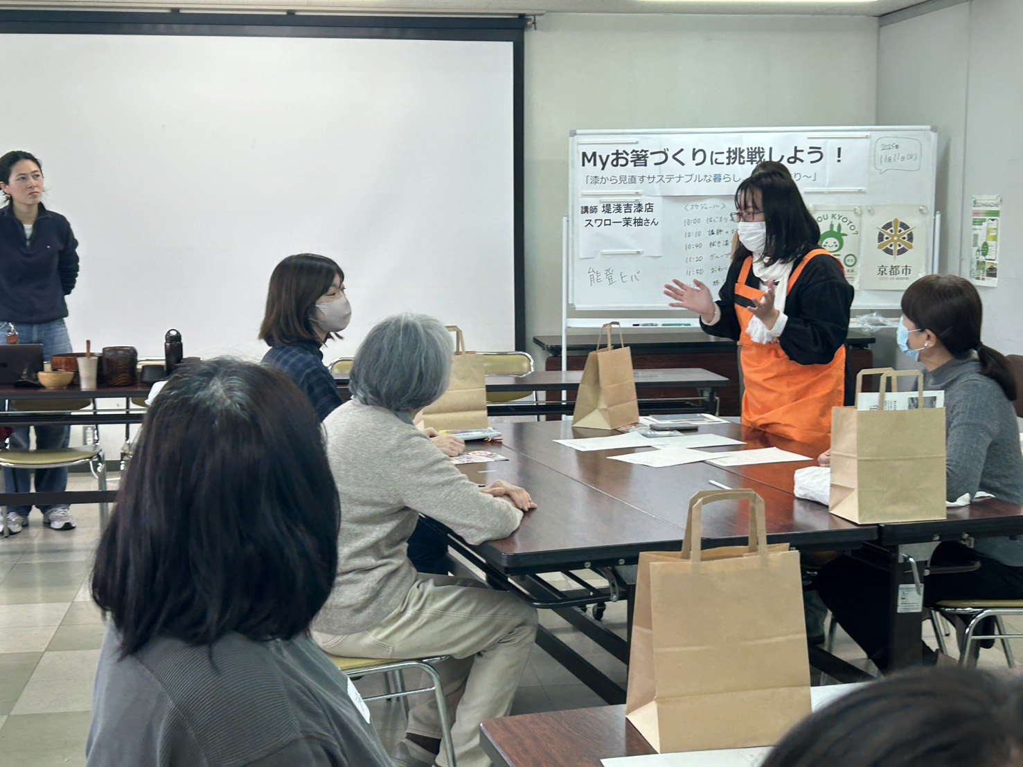 漆の歴史から、その活用例、そしてお箸づくりで漆体験と盛り沢山の内容でした。