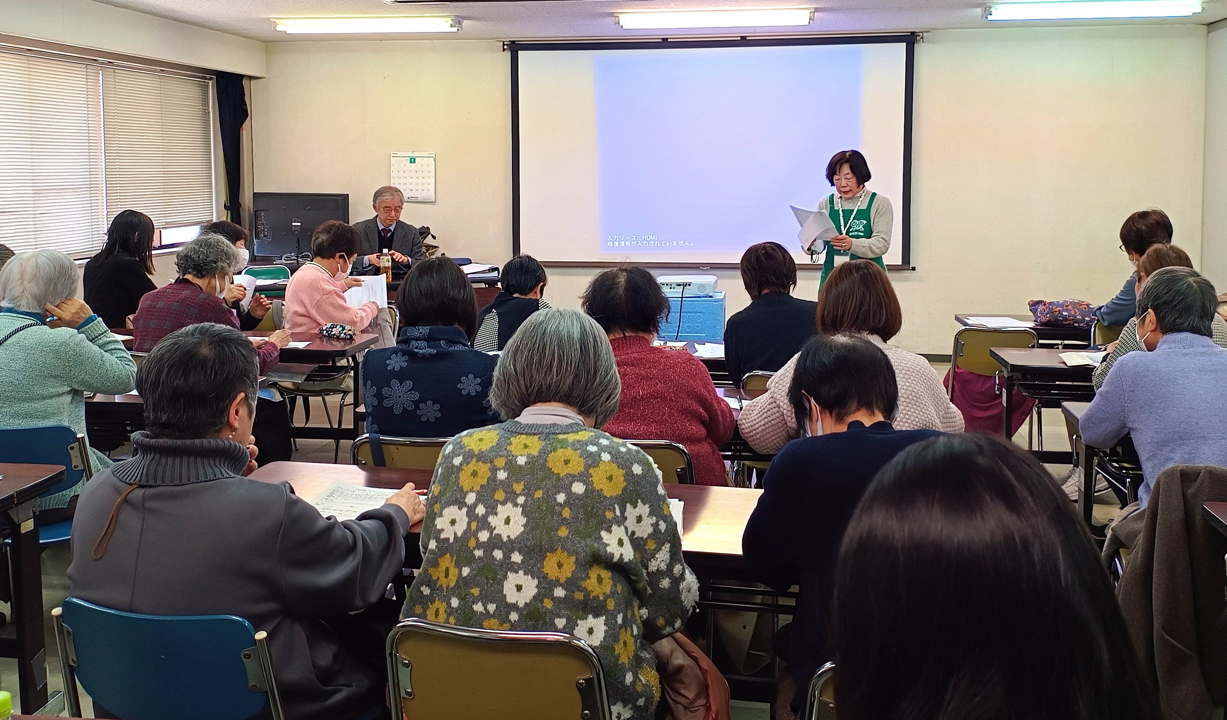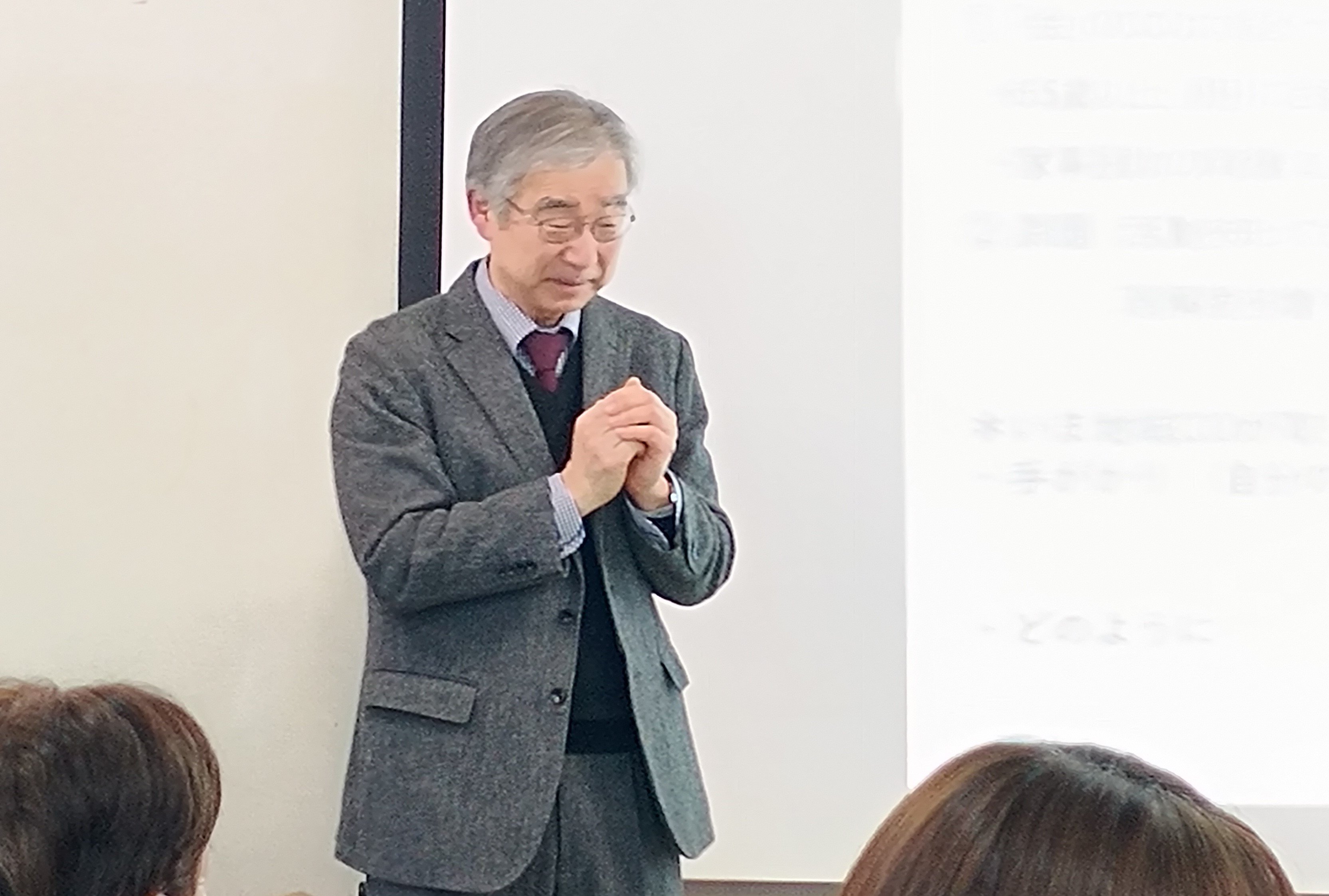 後半は大谷大学の平尾良治先生による「京都生協くらしの助け合いの活動再構築に向けて」のお話として、昨年10月に地域コーディネーターにご協力いただいたアンケートの結果報告の後、5人ずつのグループに分かれて分散会を実施しました。