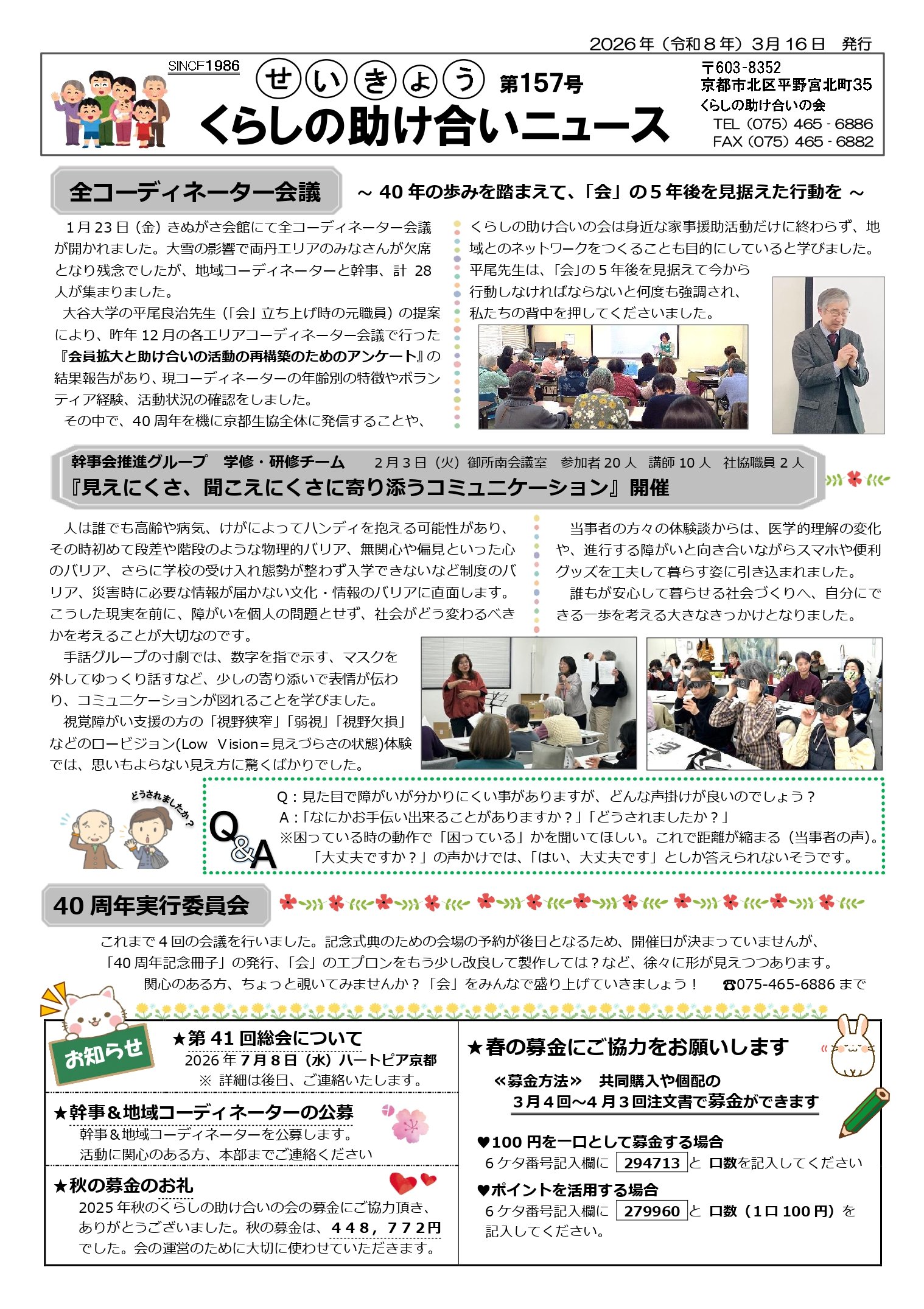 せいきょう くらしの助け合いの会ニュース157号を発行しました